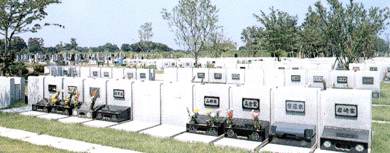 緑地公園を思わせるような明るい芝生墓所は、霊園全体が美しい緑の芝生で敷き詰められ、ゆったりとしたスペースに西欧的な墓石が 並べられています。また万霊平等の精神から、区画面積や墓石の形も統一されている場合も多いようです。